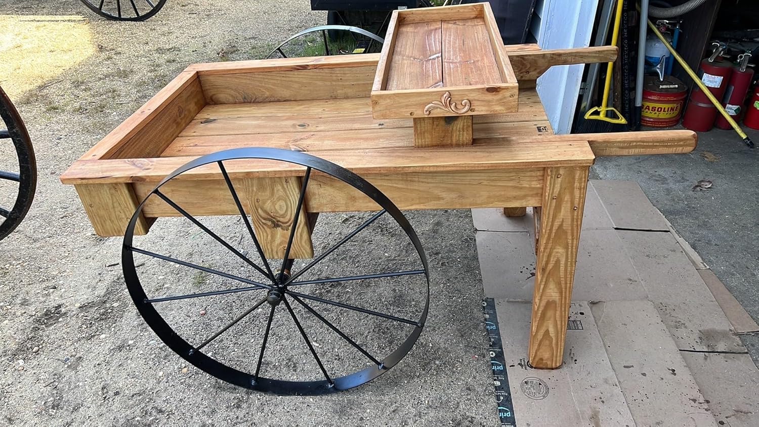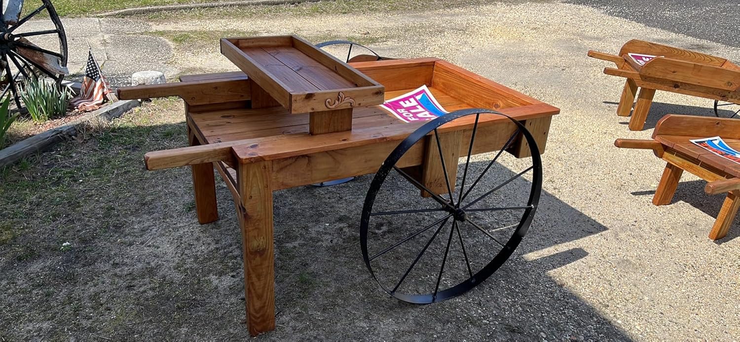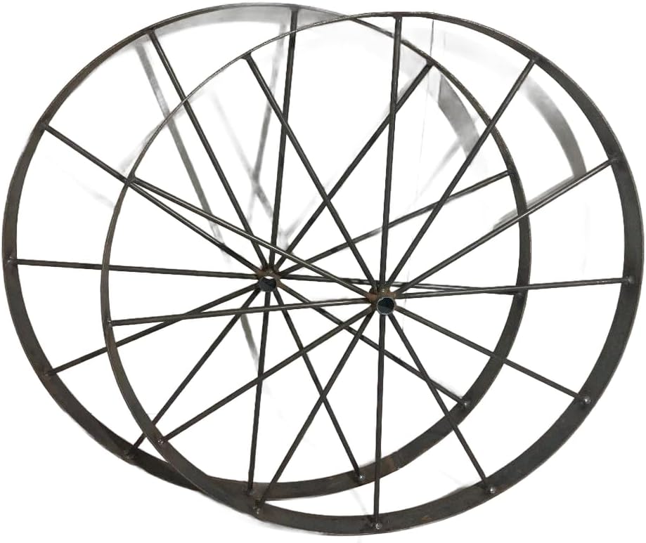 A matching pair (2 wheels) of hand-welded 30″ decorative steel wagon wheels — heavy, bold, and built to impress. 12-spoke design with solid round bar construction.